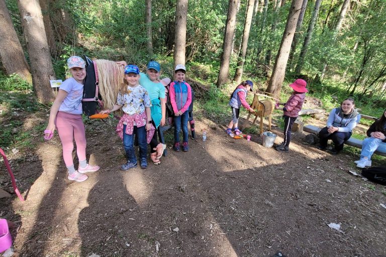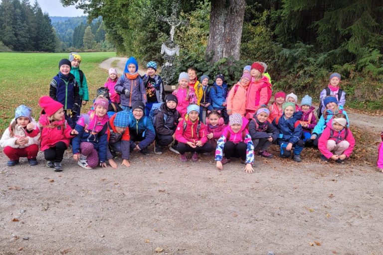 Die Klasse 2b besuchte zusammen mit den Vorschulkindern des Kindergarten St. Hermann den Waldkindergarten in Bischofsmais.