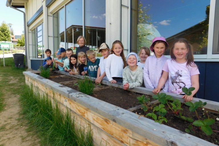 Frau Weber und Frau Rein vom Gartenbauverein bekamen tatkräftige Unterstützung der 1. Klasse.